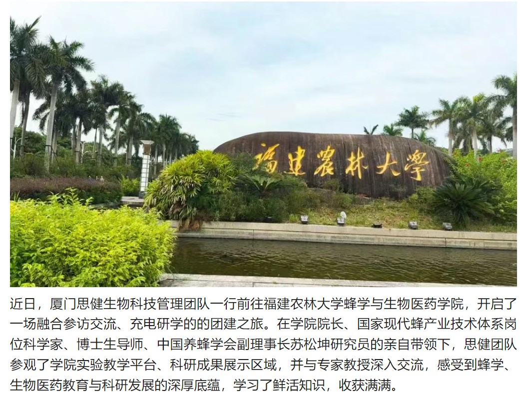 思健管理團隊赴福建農(nóng)林大學蜂學與生物醫(yī)藥學院團建研學