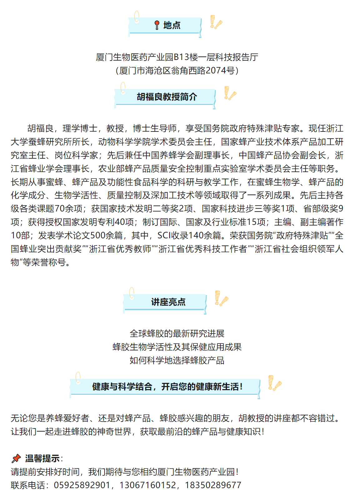 國(guó)家蜂業(yè)崗位科學(xué)家胡福良教授來(lái)廈做“蜂膠與健康”科普講座