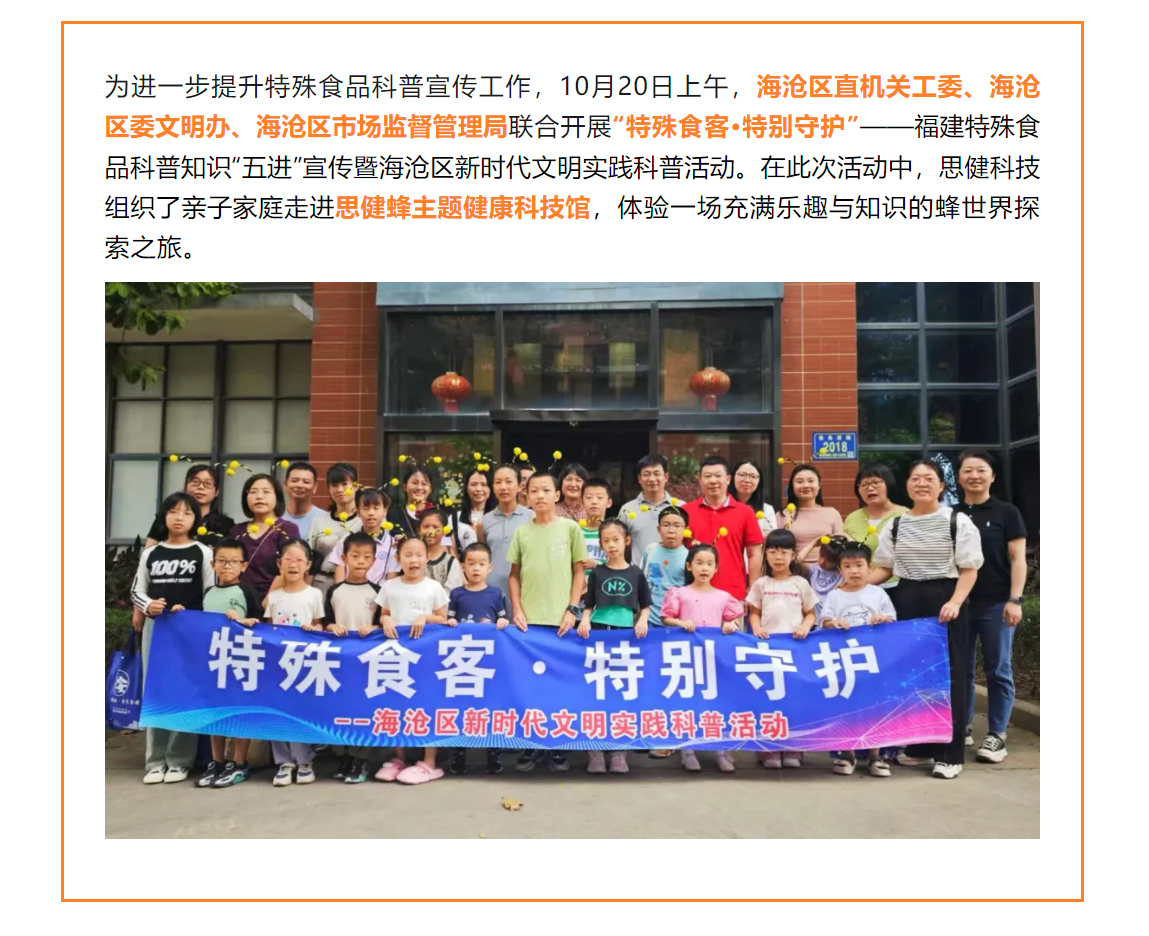 特殊食品知多少?這場(chǎng)活動(dòng)甜蜜又有料….福建特殊食品科普知識(shí)“五進(jìn)”宣傳暨海滄區(qū)新時(shí)代文明實(shí)踐科普活動(dòng)走進(jìn)思健蜂主題科技館